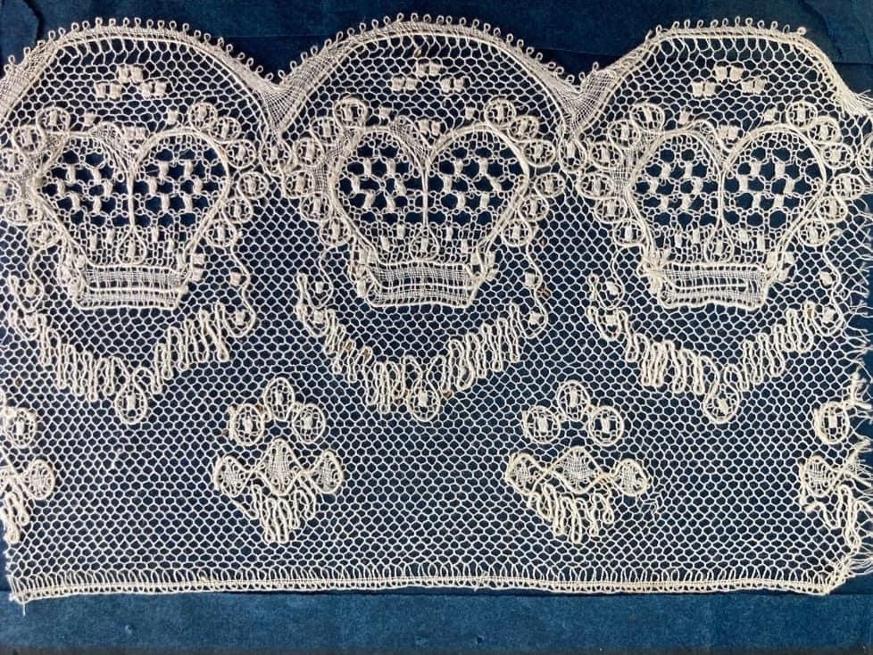 The ‘Crown’ Lace itself - curiously the Crown is upside down! Normally would be attached to hang from the footside.