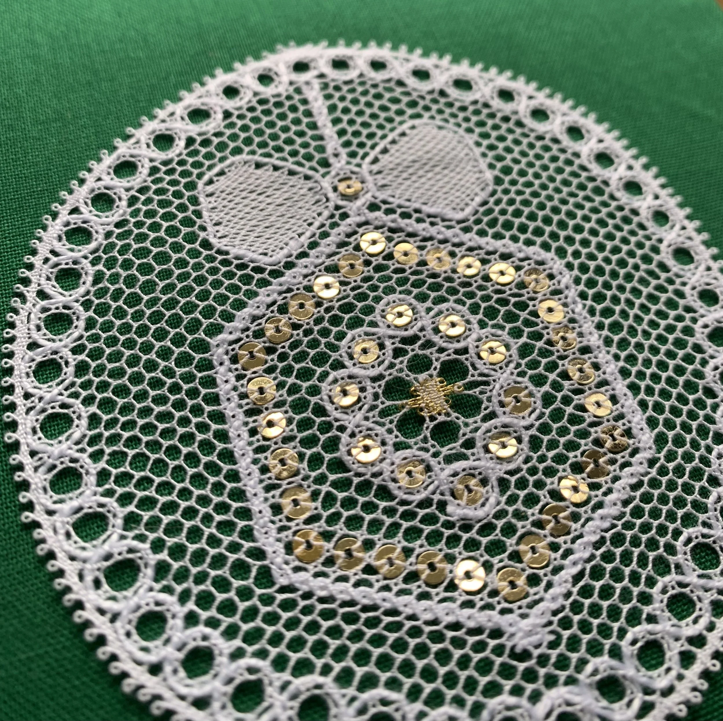 With this design I worked it with a modern contemporary twist, however I am not a huge fan of bright colours in my lace, but you can play around with these to create your own versions with use of colour on threads and/or sparkle. Why not be creative and mix it up a little, after all it is a Christmas Coaster.